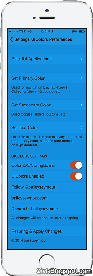 Như hình trên, UIColors sẽ cho phép bạn tô màu gần như bất cứ điều gì có thể làm với iOS. Tinh chỉnh là rất dễ sử dụng, nó cho người sử dụng một phạm vi vô hạn các lựa chọn màu sắc có thể dễ dàng áp dụng với sau khi respring.